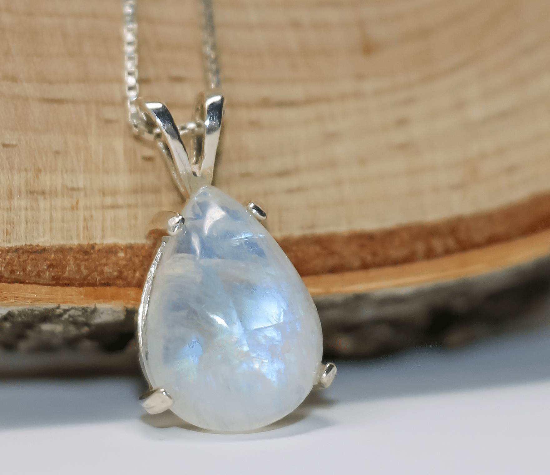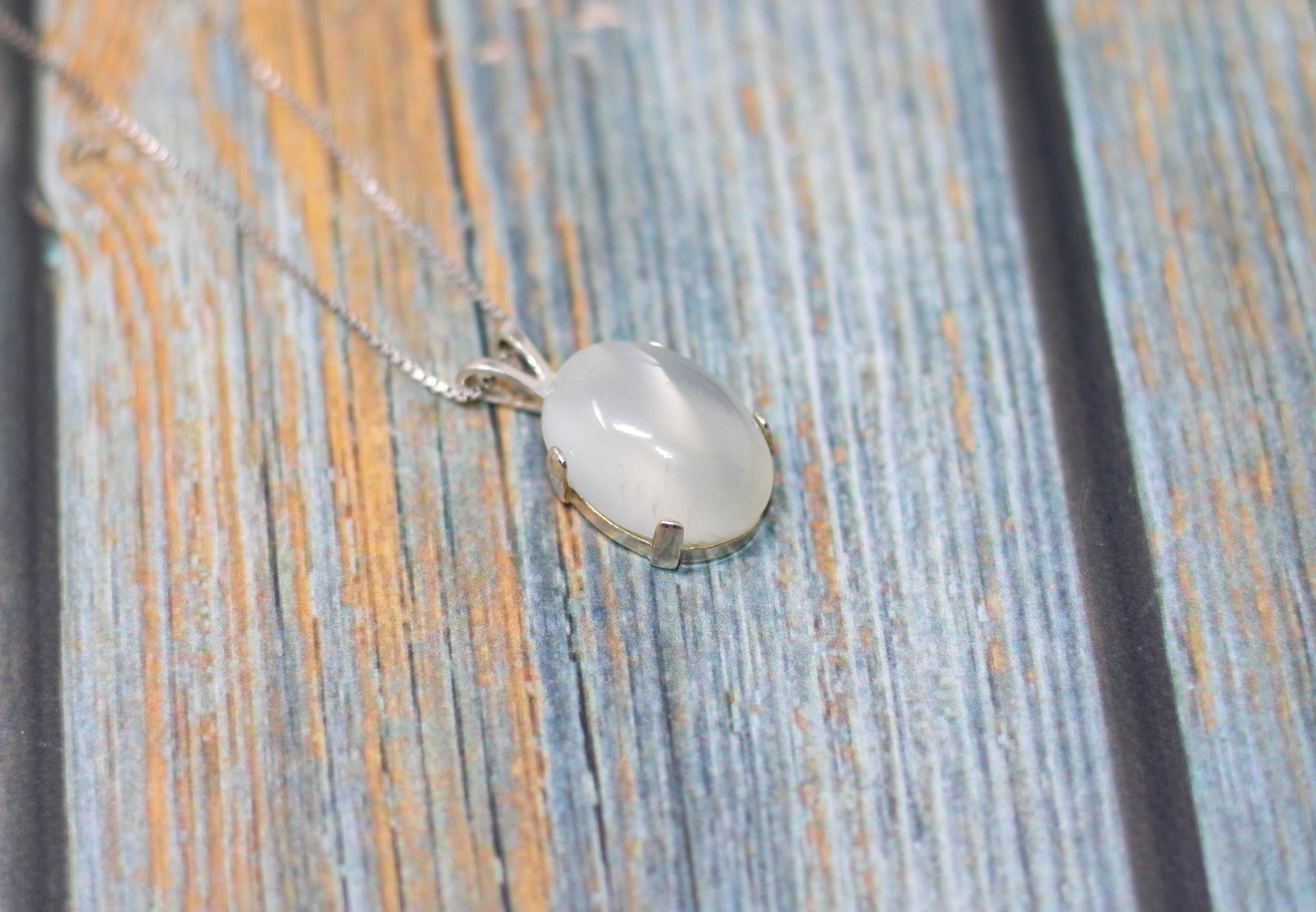 White Moonstone Necklace | Silver Moonstone Pendant