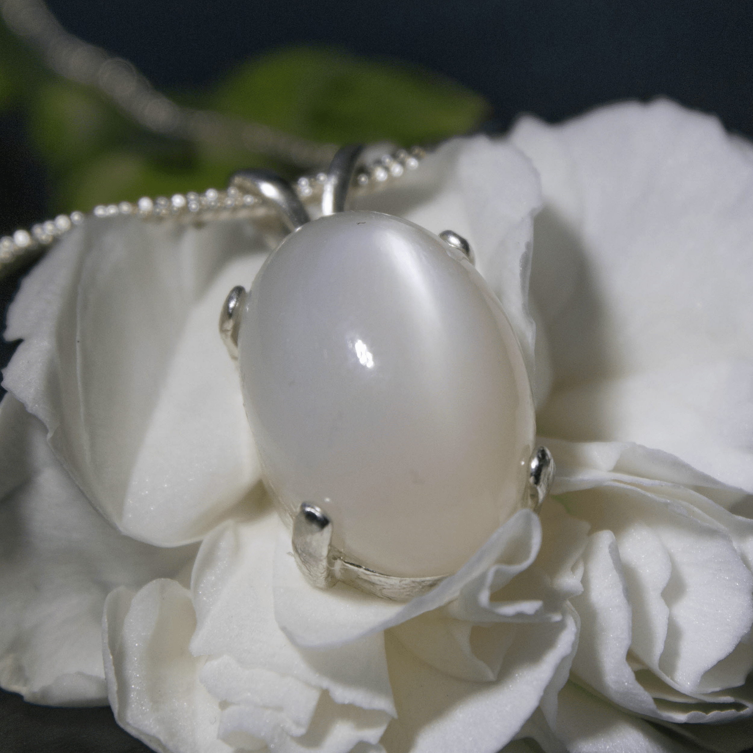 White Cat’s Eye Moonstone Pendant Necklace